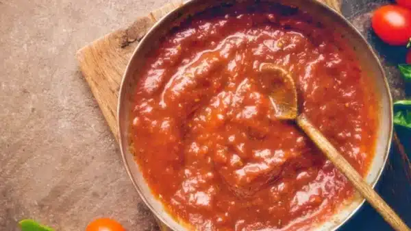 La sauce Marinara ressemble à la sauce tomate, mais on ajoute généralement de l’ail et des herbes, comme le basilic et l’origan, au mélange de tomates et d’huile d’olive.
