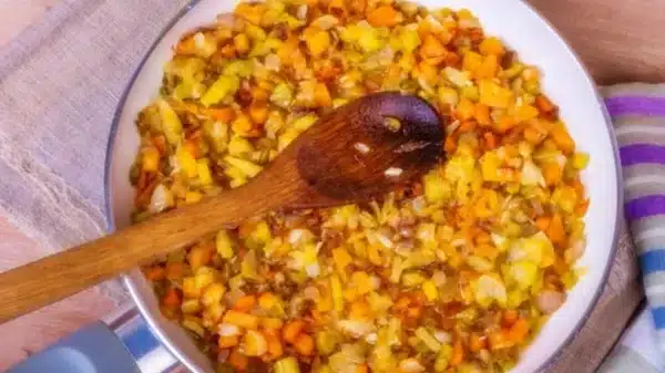 Cette simple étape ajoute une quantité surprenante de profondeur et de complexité à n’importe quel plat, qu’il s’agisse d’une recette basique ou sophistiquée. Vous devez vous assurer que les légumes sont coupés uniformément et qu’ils sont cuits avec soin à feu doux pour éviter une cuisson inégale ou un brûlage. Une fois que vous maîtrisez la technique, vous pouvez ajouter d’autres ingrédients comme de l’ail et des herbes pour encore plus de saveur. Un soffritto parfaitement cuit est l’un des secrets d’une bonne bolognaise, de soupes comme les pasta e fagioli, et de grands classiques comme l’osso buco. Vous pouvez également le préparer en grandes quantités et le congeler, afin d’avoir toujours sous la main un ingrédient secret qui rehausse la saveur.